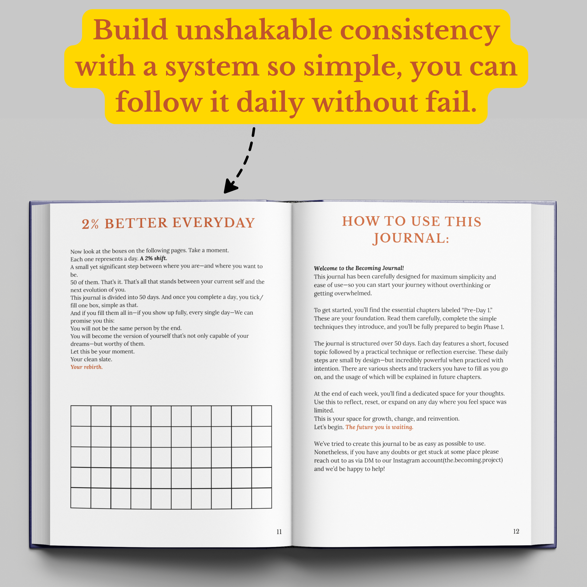 Whether you’re a student, a working professional, or someone simply feeling stuck, the Becoming Journal is for you. It helps beginners who want a clear path, and it also helps those who’ve already tried books, courses, or videos but still struggle to make change stick.